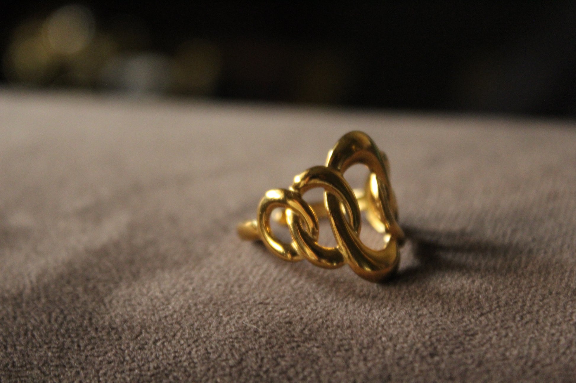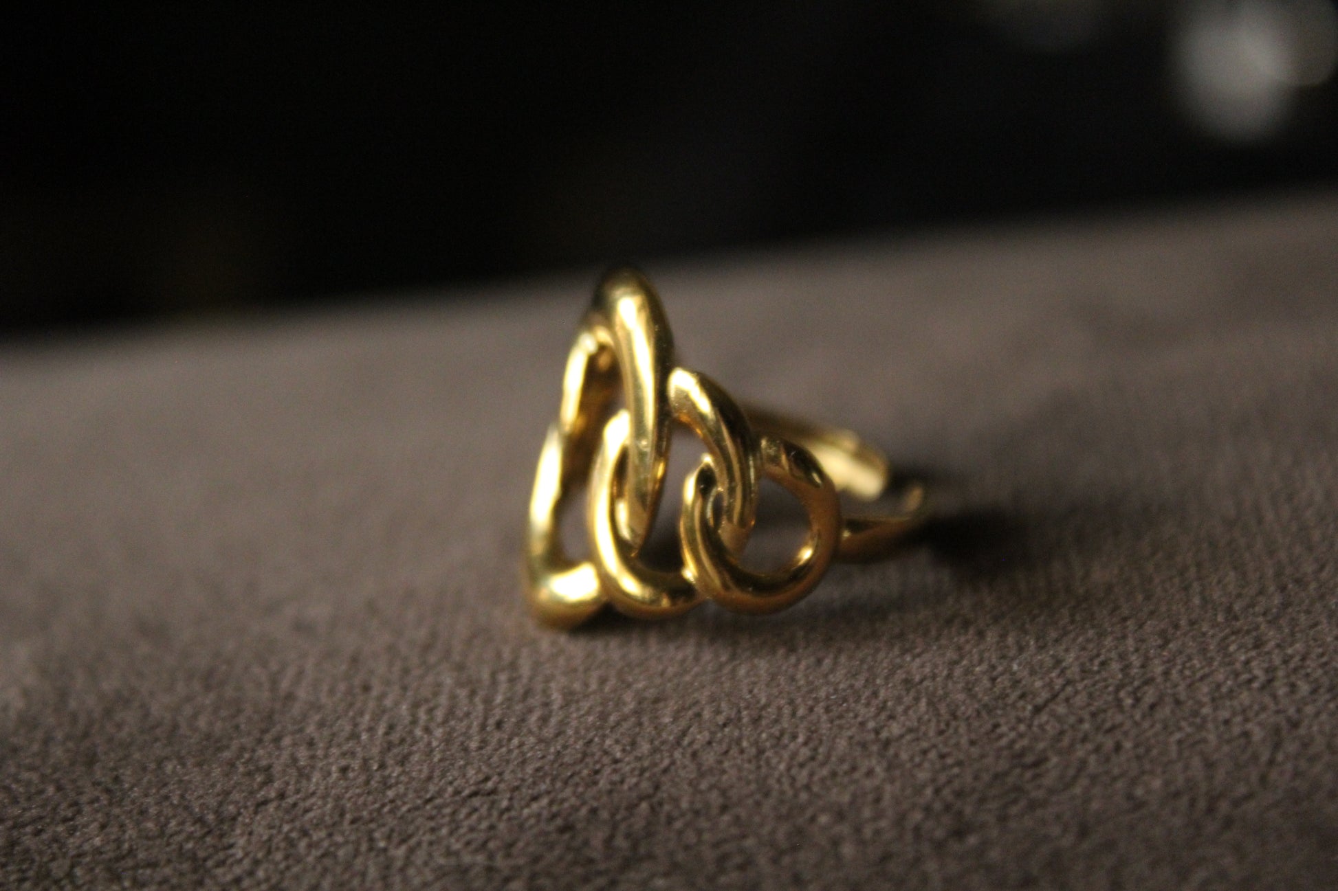Loop in Loop golden ring with a sleek band. This ring is hypoallergenic, so no more worries about skin rash. Perfect for everyday wear or any special occasion.