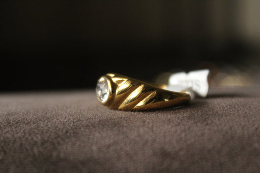 The Studded Solitaire Ring features a brilliant central stone with an elevated look on a chic golden band. This ring is hypoallergenic, so no more worries about skin rash. Perfect for everyday wear!